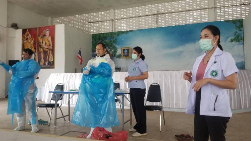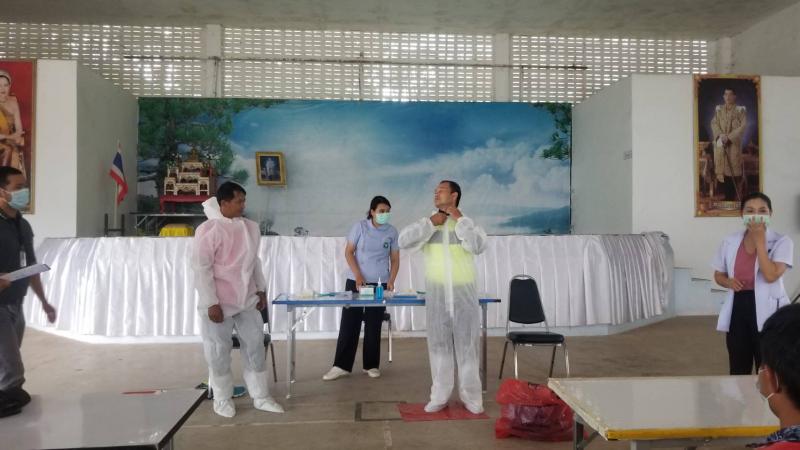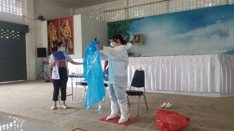 อบรมเชิงปฏิบัติการเรื่องการใช้เครื่องฉีดยาฆ่าเชื้อโรคและการสวมใส่ชุด PPE ป้องกันโรค