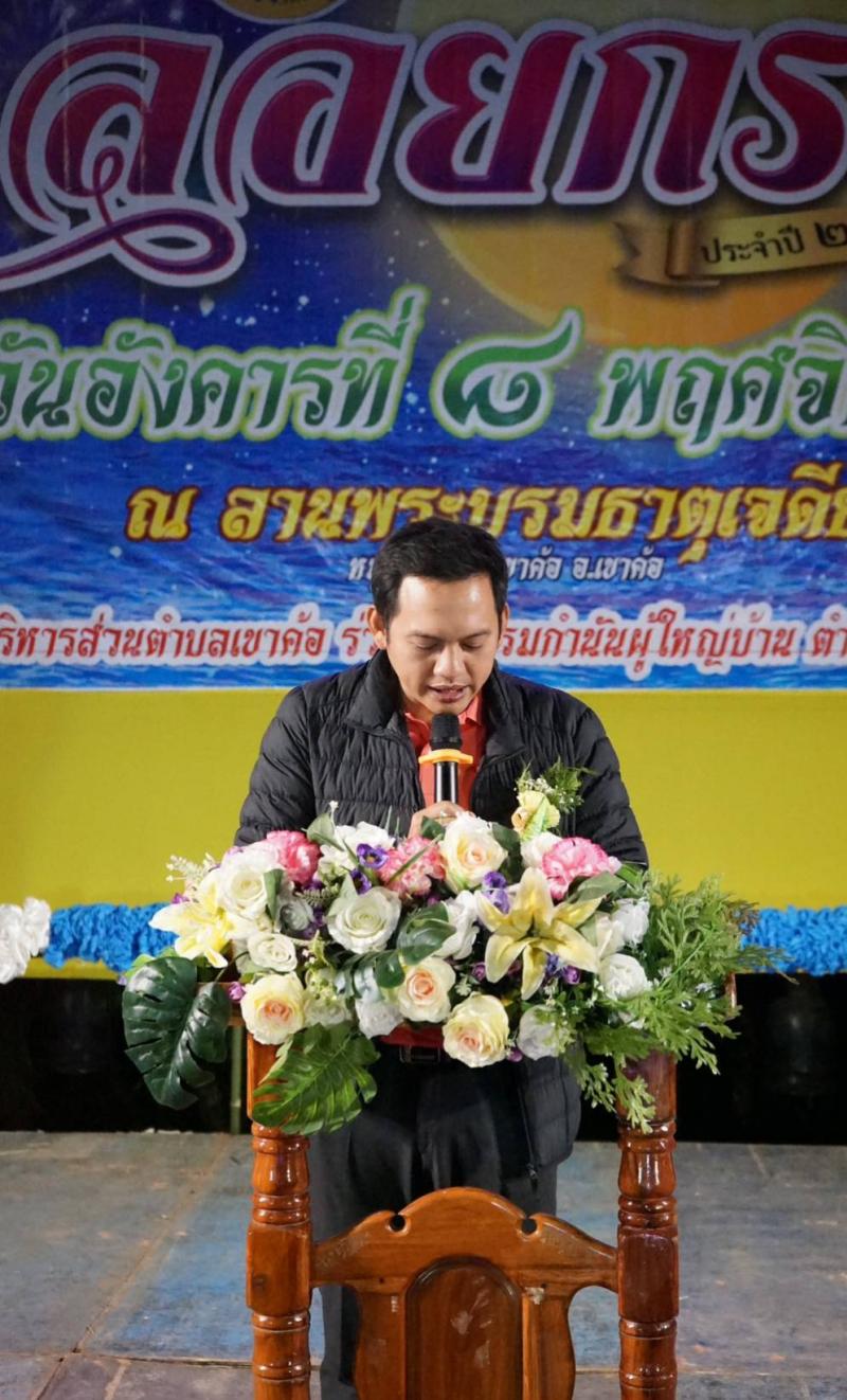 รายละเอียด : วันที่ 8 พฤศจิกายน 2565 เวลา 18.00 น. องค์การบริหารส่วนตำบลเขาค้อ โดย นางจันทร์แรม ศรีเดช นายกองค์การบริหารส่วนตำบลเขาค้อ พร้อมด้วย คณะผู้บริหาร สมาชิกสภา อบต.เขาค้อ พนักงานส่วนตำบล ลูกจ้าง ดำเนินโครงการสืบสานประเพณีวันลอยกระทง ประจำปี 2565 ณ ลานพระบรมธาตุเจดีย์กาญจนาภิเษก วัดวิชมัยปุญญาราม หมู่ที่ 1 ตำบลเขาค้อ โดยมี นายภาคภูมิ ภูมี นายอำเภอเขาค้อ กล่าวต้อนรับ นายชัชวาลย์ เบญจสิริวงศ์ รองผู้ว่าราชการจังหวัดเพชรบูรณ์ ประธานในงาน และนางจันทร์แรม ศรีเดช นายกองค์การบริหารส่วนตำบลเขาค้อ กล่าวรายงานวัตถุประสงค์ของโครงการ
