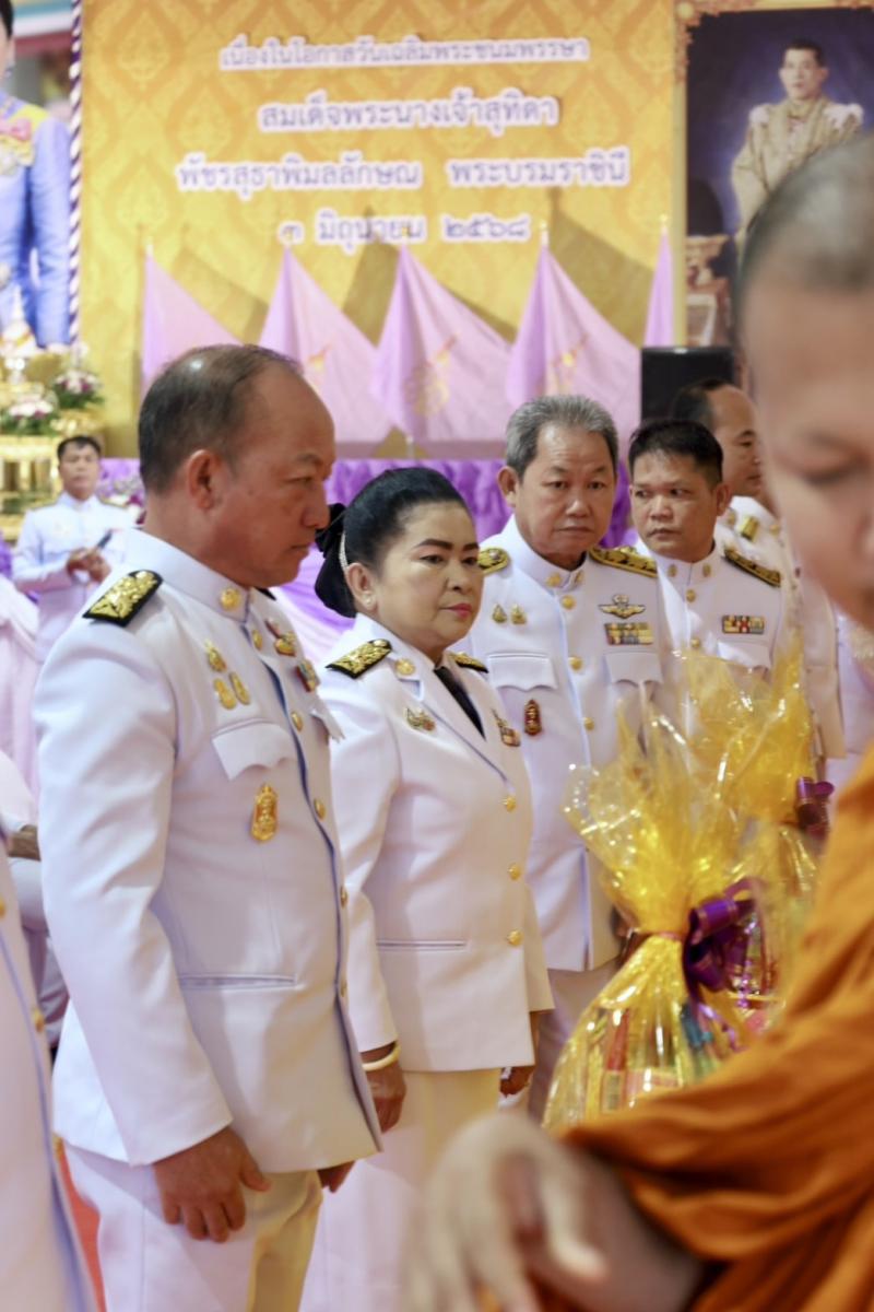 พิธีเจริญพระพุทธมนต์และทำบุญตักบาตรถวายเป็นพระราชกุศลเฉลิมพระเกียรติ สมเด็จพระนางเจ้าฯ พระบรมราชินีฯ เนื่องในโอกาสวันเฉลิมพระชนมพรรษา 3 มิถุนายน 2568