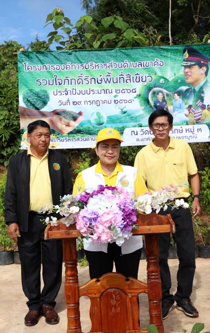 นางจันทร์แรม ศรีเดช นายกองค์การบริหารส่วนตำบลเขาค้อ เป็นประธานเปิดโครงการองค์การบริหารส่วนตำบลเขาค้อรวมใจภักดิ์ษ์พื้นที่สีเขียว ประจำปีงบประมาณ 2568 ณ วัดป่าสิมารักษ์ ตำบลเขาค้อ อำเภอเขาค้อ จังหวัดเพชรบูรณ์ เพื่อให้ประชาชนได้แสดงความจงรักภักดี และถวายเป็น พระราชกุศลแด่พระบาทสมเด็จพระปรเมนทรรามาธิบดีศรีสินทรมหาวชิราลงกรณ พระวชิรเกล้าเจ้าอยู่หัว รัชกาลที่ 10 เนื่องในโอกาสทรงเจริญพระชนมพรรษา 73 พรรษา 28 กรกฎาคม 2568 และปลูกฝังจิตสำนึกให้ประชาชนในท้องถิ่นมีใจรักต้นไม้ รักป่าไม้ หวงแหนทรัพยากรป่าไม้และรักษาสิ่งแวดล้อม โดยมีคณะผู้บริหาร ประธานสภา สมาชิกสภา ข้าราชการ พนักงานองค์การบริหารส่วนตำบลเขาค้อ ผู้นำชุมชน และประชาชนในพื้นที่เข้าร่วมกิจกรรม