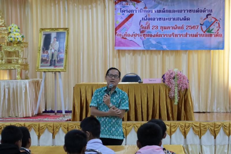 รายละเอียด : วันที่ 23 กุมภาพันธ์ 2567 องค์การบริหารส่วนตำบลเขาค้อ โดยกองสวัสดิการสังคม ได้จัดทำโครงการฝึกอบรมเด็กและเยาวชนต่อต้านเพื่อเอาชนะเยาเสพติด ประจำปี 2567 โดยมีนางจันทร์แรม ศรีเดช นายกองค์การบริหารส่วนตำบลเขาค้อ กล่าวรายงานวัตถุประสงค์โครงการฯ ต่อ นายสุเทพ เบียร์ดี นายอำเภอเขาค้อ ณ ห้องประชุมองค์การบริหารส่วนตำบลเขาค้อ