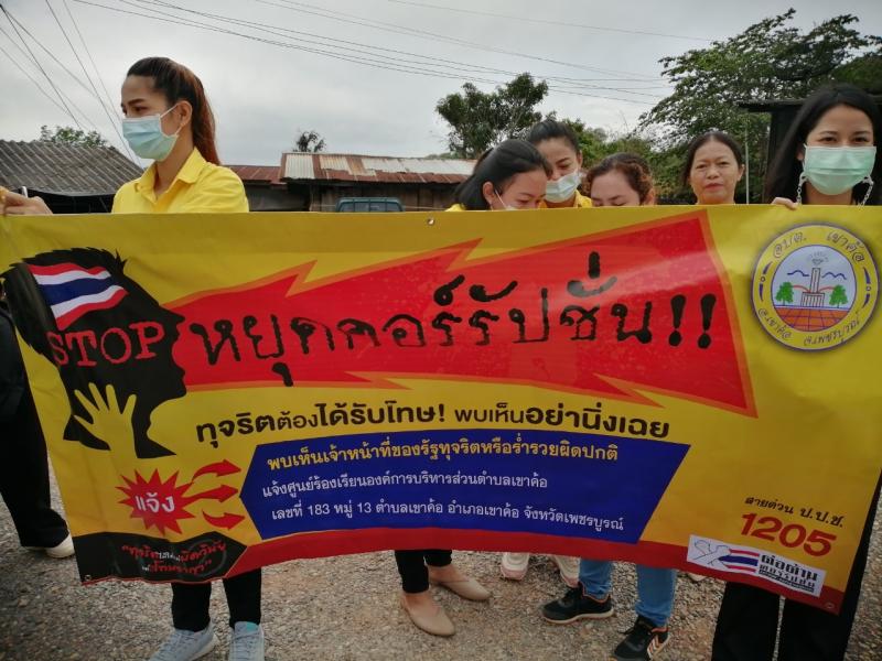 รายละเอียด : วันที่ 22 มีนาคม 2564 นางจันทร์แรม ศรีเดช นายกองค์การบริหารส่วนตำบลเขาค้อ นายเดชา สินจ้าง รองนายกองค์การบริหารส่วนตำบลเขาค้อ นายมาฆะ สืบวงศ์ ปลัดองค์การบริหารส่วนตำบลเขาค้อ ว่าที่ ร.ต.หญิงลลิตวดี เสียงเพราะ รองปลัดองค์การบริหารส่วนตำบลเขาค้อ พร้อมด้วย พนักงานส่วนตำบล ลูกจ้าง สังกัดองค์การบริหารส่วนตำบลเขาค้อ ผู้นำชุมชน ราษฎร หมู่ที่ 9 , 14 ตำบลเขาค้อ ร่วมเดินรณรงค์ต่อต้านและเฝ้าระวังการทุจริต เพื่อสร้างจิตสำนึกให้แก่ข้าราชการ เจ้าหน้าที่ของรัฐ และประชาชน ในการป้องกันการทุจริต