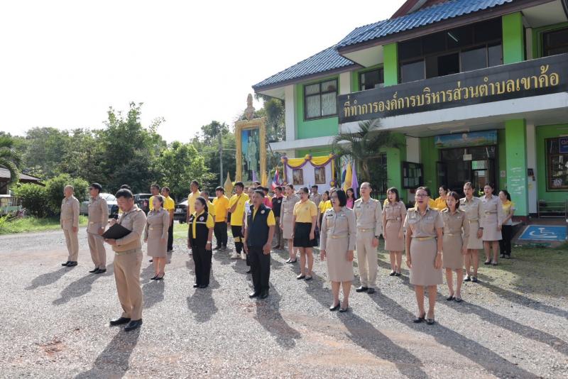 รายละเอียด : วันที่ 4 มิถุนายน 2567 นางจันทร์แรม ศรีเดช นายกองค์การบริหารส่วนตำบลเขาค้อ พร้อมด้วยคณะผู้บริหาร ข้าราชการ ลูกจ้าง พนักงานจ้าง ร่วมเคารพธงชาติ ประจำเดือน มิถุนายน 2567 พร้อมให้โอวาทก่อนปฏิบัติงาน ณ หน้าที่ทำการองค์การบริหารส่วนตำบลเขาค้อ