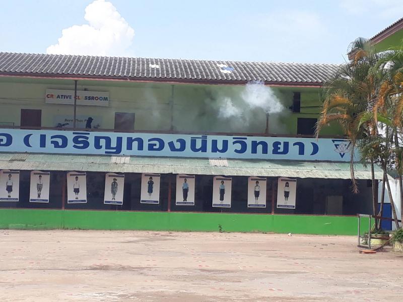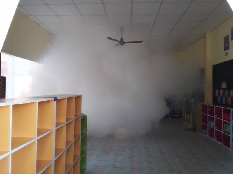 ฉีดพ่นหมอกควันในสถานศึกษาเตรียมการก่อนเปิดภาคเรียน