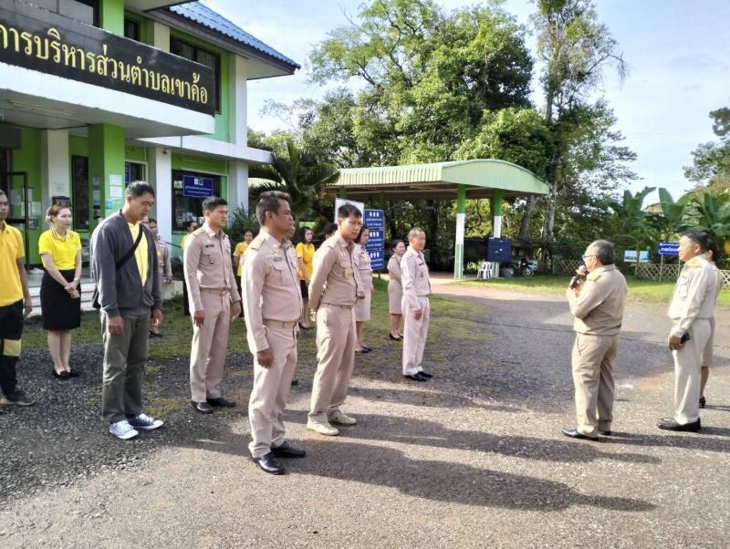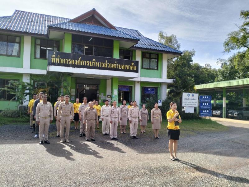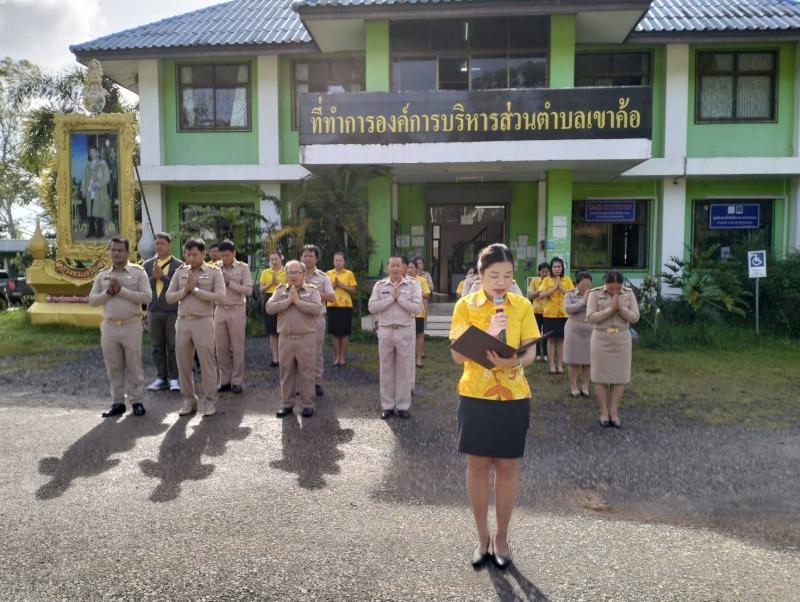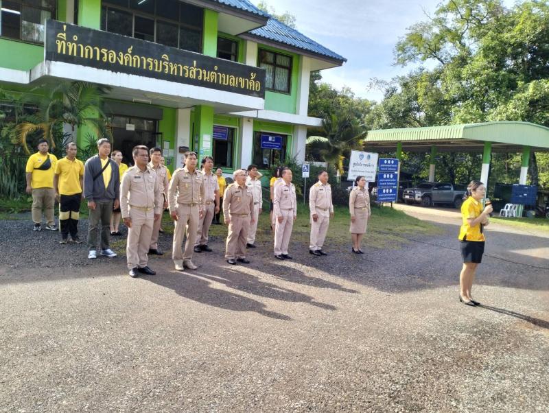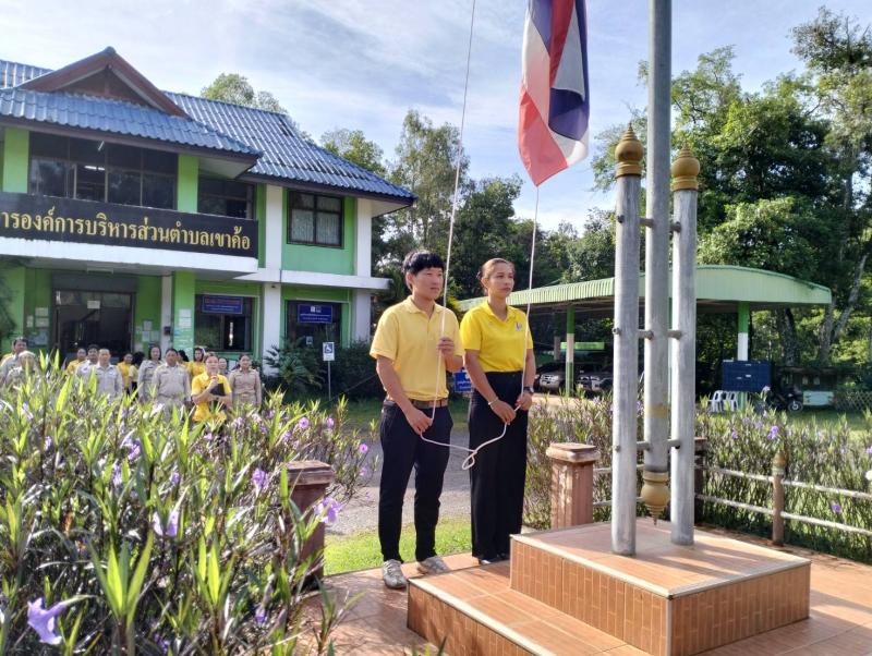 รายละเอียด : วันที่ 2 ตุลาคม 2566 นางจันทร์แรม ศรีเดช นายกองค์การบริหารส่วนตำบลเขาค้อ มอบหมายให้ นายกายสิทธิ์ บำรุงคีรี รองนายกองค์การบริหารส่วนตำบลเขาค้อ พร้อมด้วย ข้าราชการ พนักงาน ลูกจ้าง พนักงานจ้าง ร่วมกิจกรรมเคารพธงชาติ เนื่องในวันพระราชทานธงชาติไทย (Thai National Flag Day) เพื่อน้อมลำรึกถึงพระมหากรุณาธิคุณของ พระบาทสมเด็จพระมงกุฎเกล้าเจ้าอยู่หัว รัชกาลที่ 6 ที่ทรงพระราชทานธงไตรรงค์เป็นธงชาติไทย 28 กันยายน