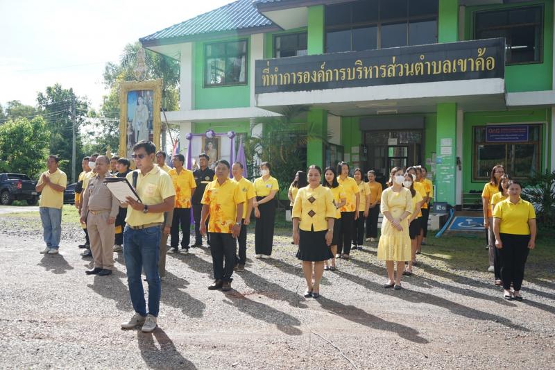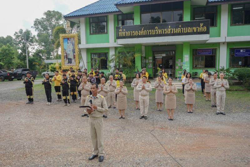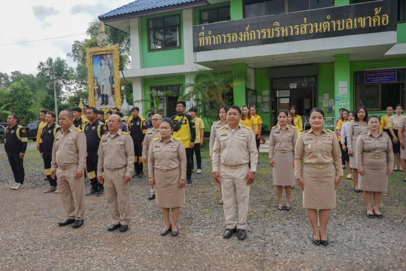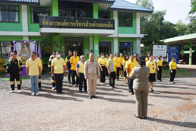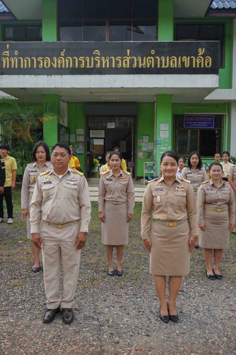 รายละเอียด : องค์การบริหารส่วนตำบลเขาค้อ โดยการนำของ นางจันทร์แรม ศรีเดช นายกองค์การบริหารส่วนตำบลเขาค้อ และคณะผู้บริหาร ข้าราชการ พนักงานส่วนตำบล ลูกจ้าง พนักงานจ้าง และศูนย์พัฒนาเเด็กเล็กในสังกัด ร่วมเคารพธงชาติทุกวันจันทร์แรกเดือน พร้อมทั้งให้โอวาสแก่ข้าราชการ พนักงาน ลูกจ้าง ก่อนปฏิบัติหน้าที่
