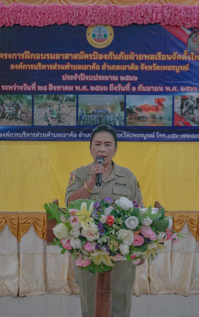 รายละเอียด : วันที่ 28 สิงหาคม 2566 นางจันทร์แรม ศรีเดช นายกองค์การบริหารส่วนตำบลเขาค้อ กล่าวรายงานวัตถุประสงค์โครงการฝึกอบรมอาสาสมัครป้องกันภัยฝ่ายพลเรือนจัดตั้งใหม่ องค์การบริหารส่วนตำบลเขาค้อ ต่อ นายอำนาจ พูนยอด ปลัดอาวุโส อำเภอเขาค้อ ประธานในพิธีเปิดโครงการฝึกอบรมอาสาสมัครป้องกันภัยฝ่ายพลเรือนจัดตั้งใหม่ องค์การบริหารส่วนตำบลเขาค้อ ณ หอประชุมองค์การบริหารส่วนตำบลเขาค้อ โดยโครงการฯมีกำหนดฝึกอบรมระหว่างวันที่ 28 สิงหาคม - 1 กันยายน 2566