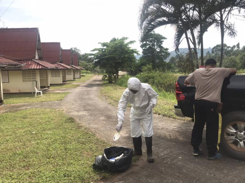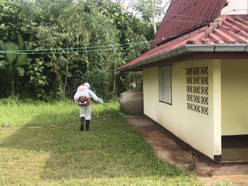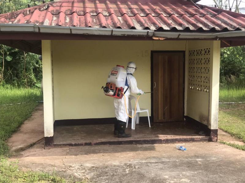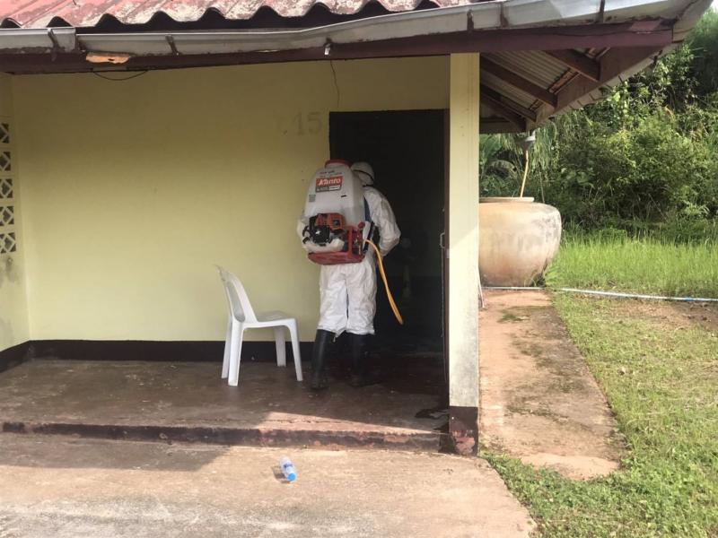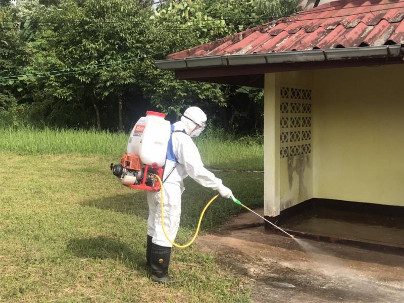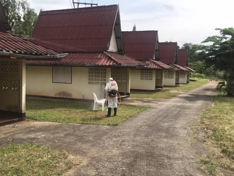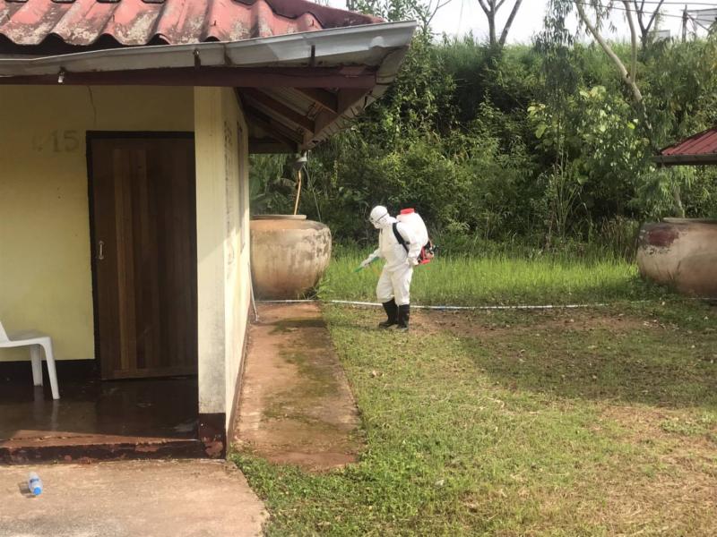 ฉีดพ่นน้ำยาฆ่าเชื้อโคโรนา 2019 ณ สถานที่กักตัว