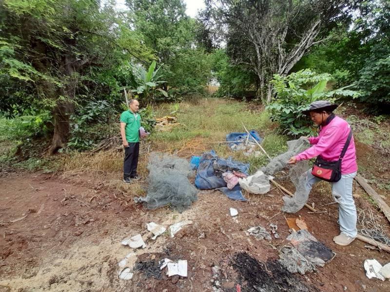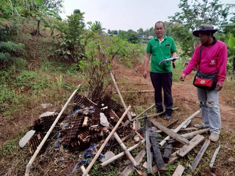 ตรวจสอบพื้นที่ไฟไหม้โรงเลี้ยงไหมของนายโสมสี นาดี หมู่ที่2 ต.สะเดาะพง