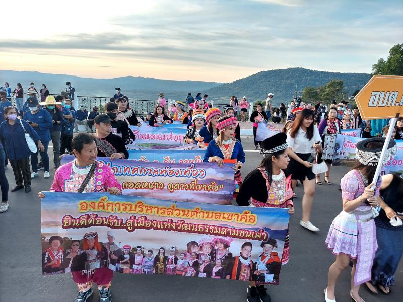 รายละเอียด : วันที่ 3 ธันวาคม 2565 นางจันทร์แรม ศรีเดช นายกองค์การบริหารส่วนตำบลเขาค้อ พร้อมด้วยคณะผู้บริหาร สมาชิกสภา อบต.เขาค้อ พนักงาน ลูกจ้าง ร่วมเดินขบวนกิจกรรม อบหมอก กอดหนาว ดูดาวที่เขาค้อ (เทศกาลท่องเที่ยวฤดูหนาวอำเภอเขาค้อ) และเปิดโครงการอบหมอก กอดหนาว ดูดาวที่เขาค้อ