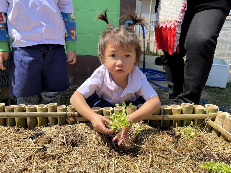 หนูน้อยปลูกผักสวนครัว เพื่อสร้างความมั่นคงทางอาหาร ศพด.เล่าลือ