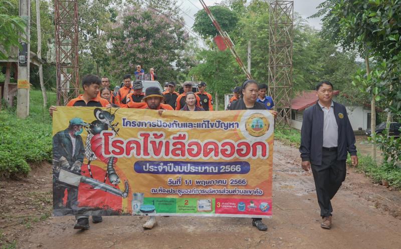 รายละเอียด : ระหว่างวันที่ 6-7 กันยายน 2566 นางจันทร์แรม ศรีเดช นายกองค์การบริหารส่วนตำบลเขาค้อ มอบหมายให้ นายกายสิทธิ์ บำรุงคีรี รองนายกองค์การบริหารส่วนตำบลเขาค้อ นายธนาพงษ์ สืบศักดิ์วงศ์ หัวหน้าสำนักปลัด นำข้าราชการ ลูกจ้าง พนักงานจ้าง ออกรณรงค์ป้องกันการแพร่ระบาดของโรคไข้เลือดออก ในเขตตำบลเขาค้อ ตำบลสะเดาะพง และตำบลริมสีม่วง ที่อยู่ในเขตความรับผิดชอบขององค์การบริหารส่วนตำบลเขาค้อ