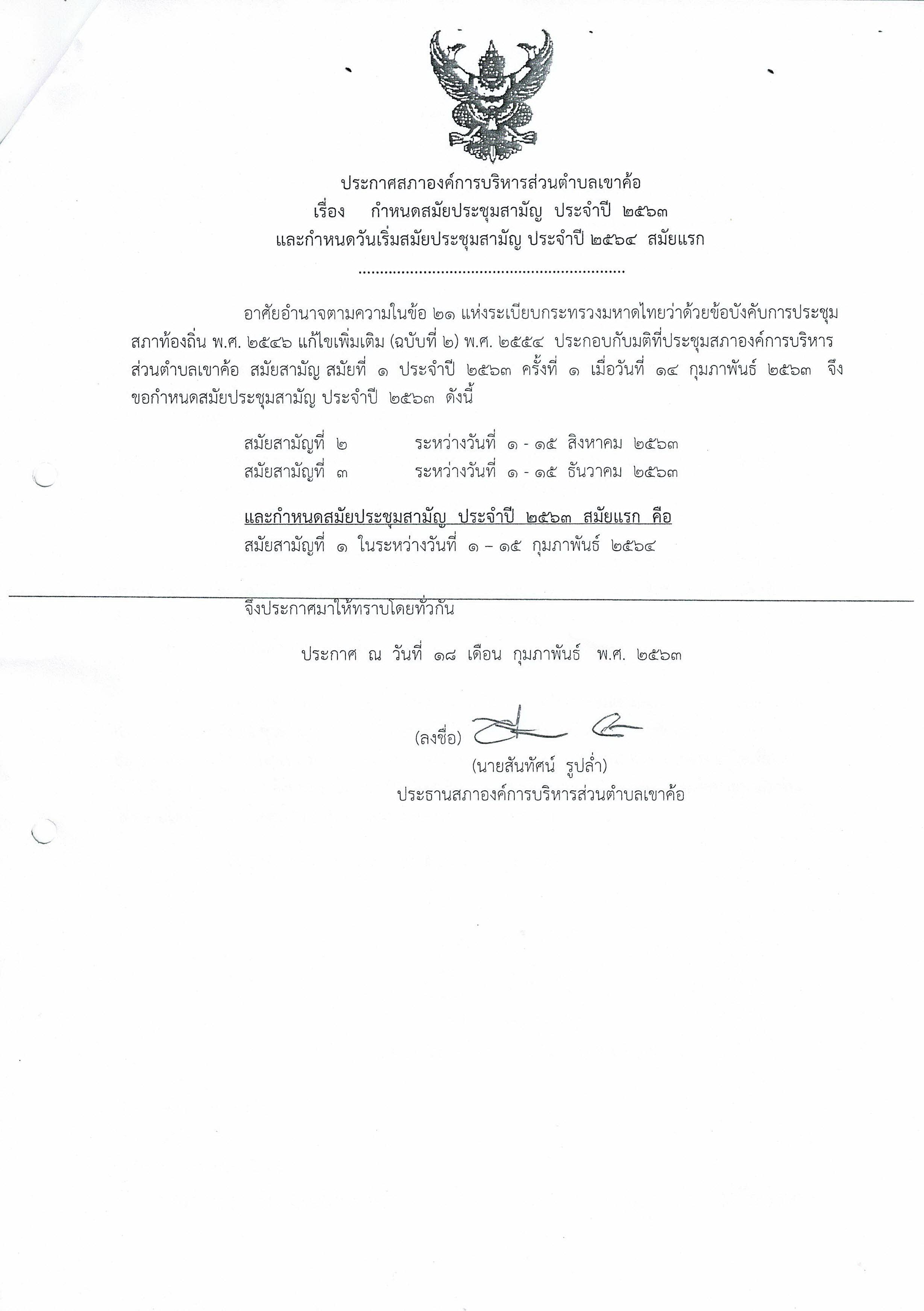 ประกาศการกำหนดสมัยประชุม สมัยสามัญ ประจำปี 2563 ของ อบต.เขาค้อ
