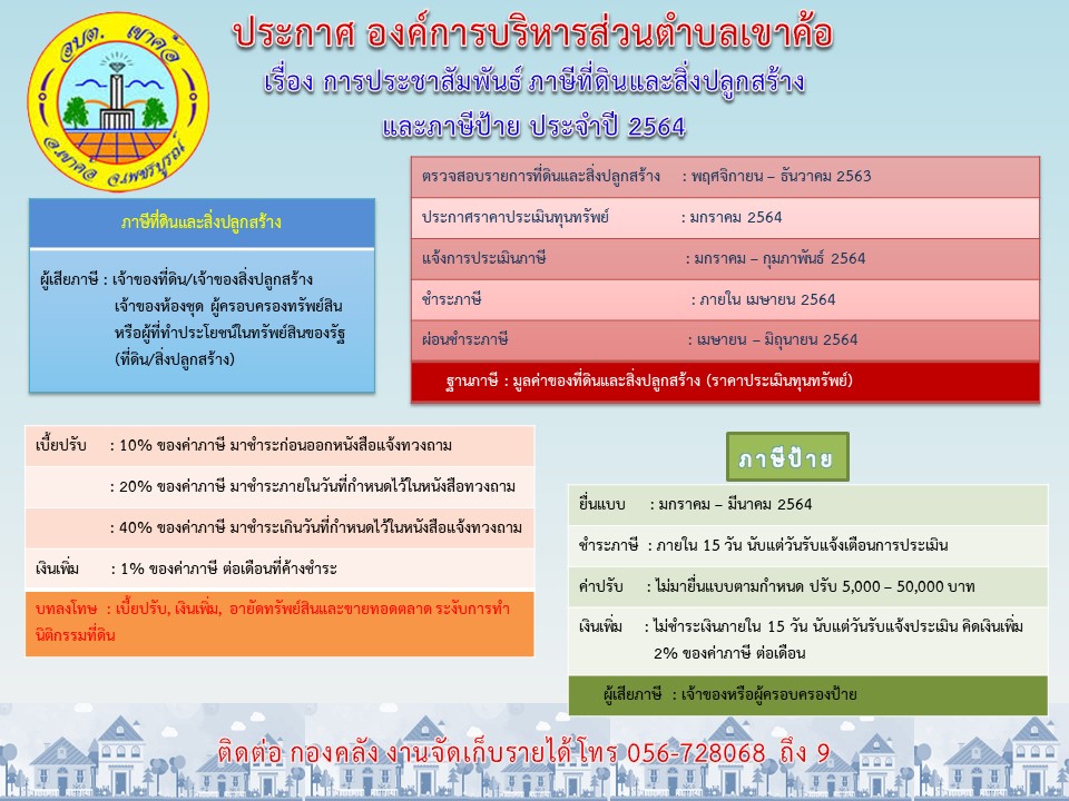 ประชาสัมพันธ์ภาษีที่ดินและสิ่งปลูกสร้าง และภาษีป้ายประจำปี 2564