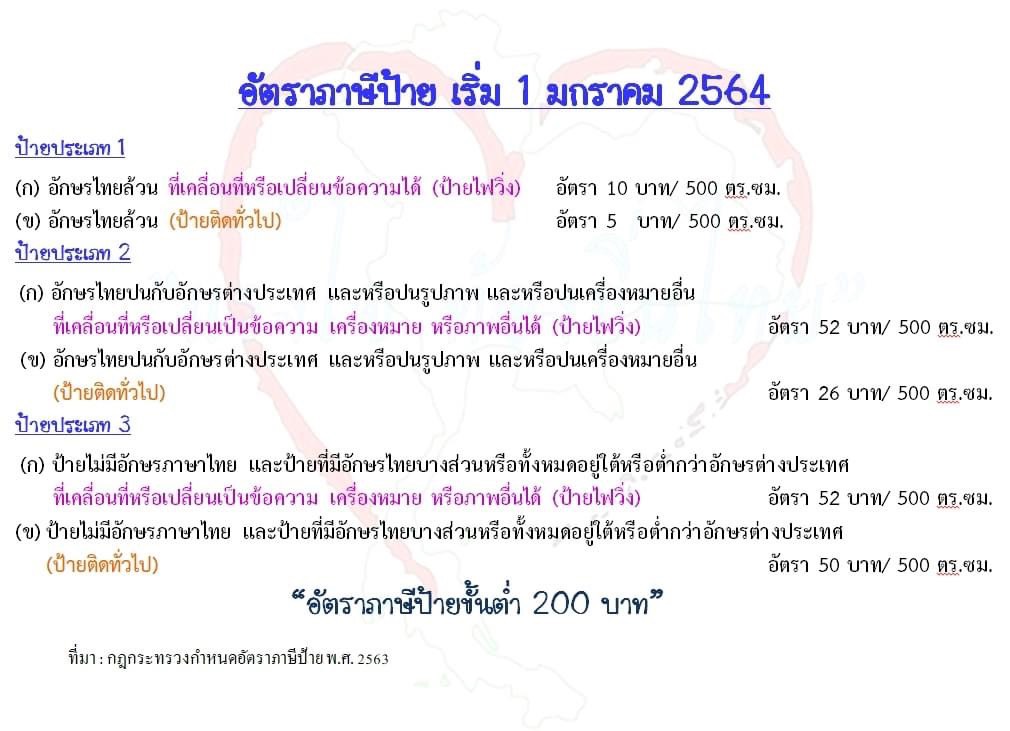ประชาสัมพันธ์อัตราภาษีป้ายประจำปี 2564