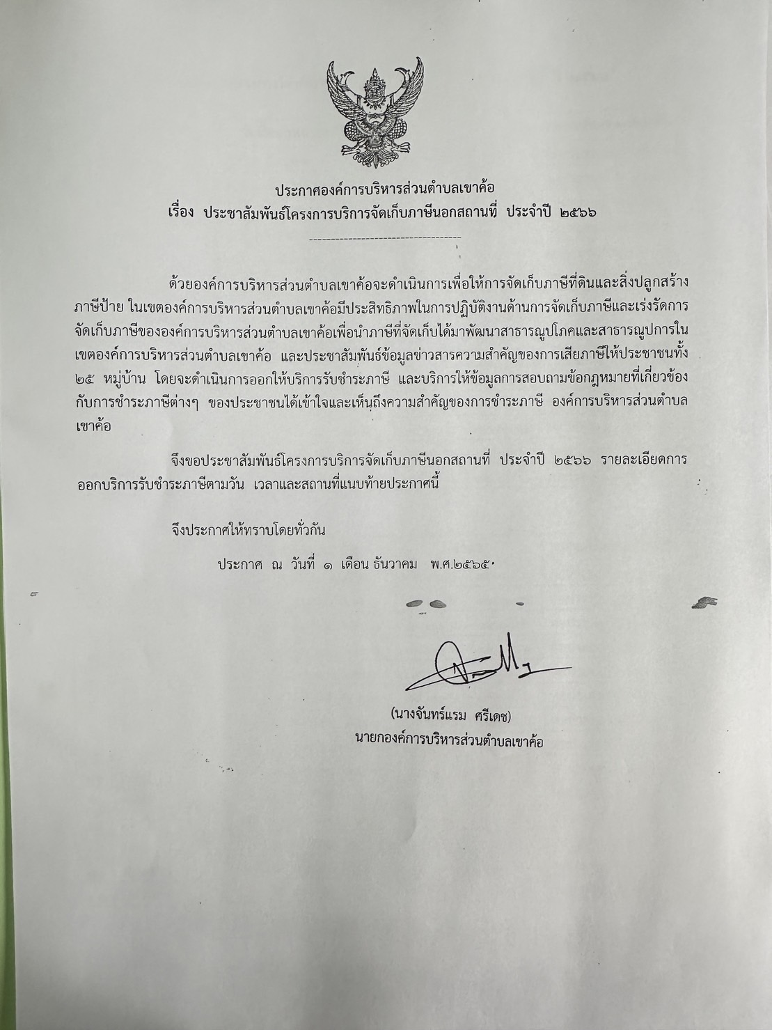 ประชาสัมพันธ์โครงการบริการจัดเก็บภาษีนอกสถานที่ ประจำปี 2566