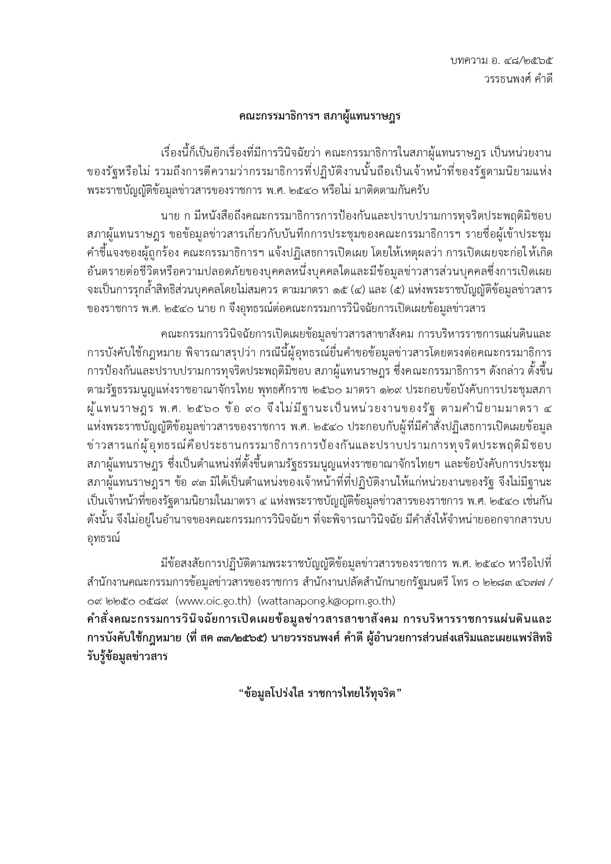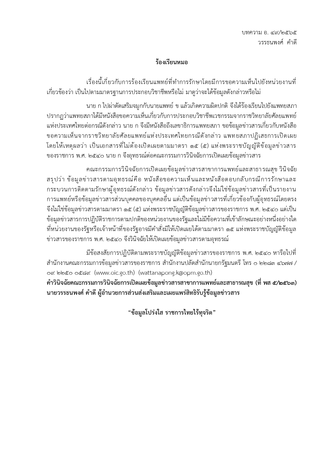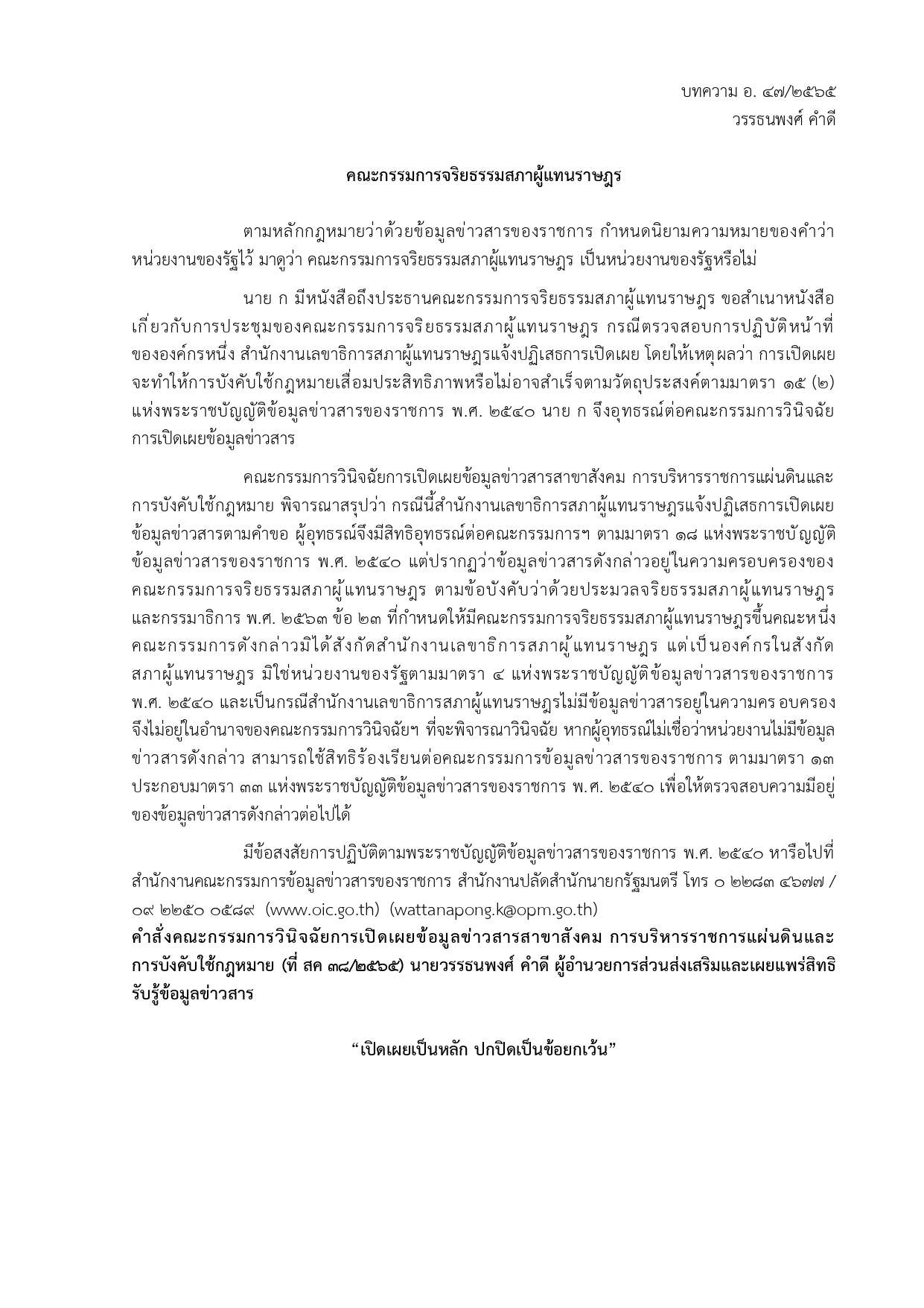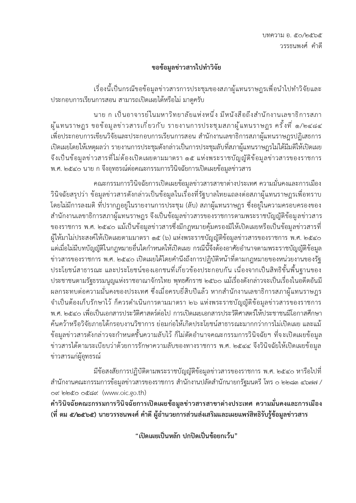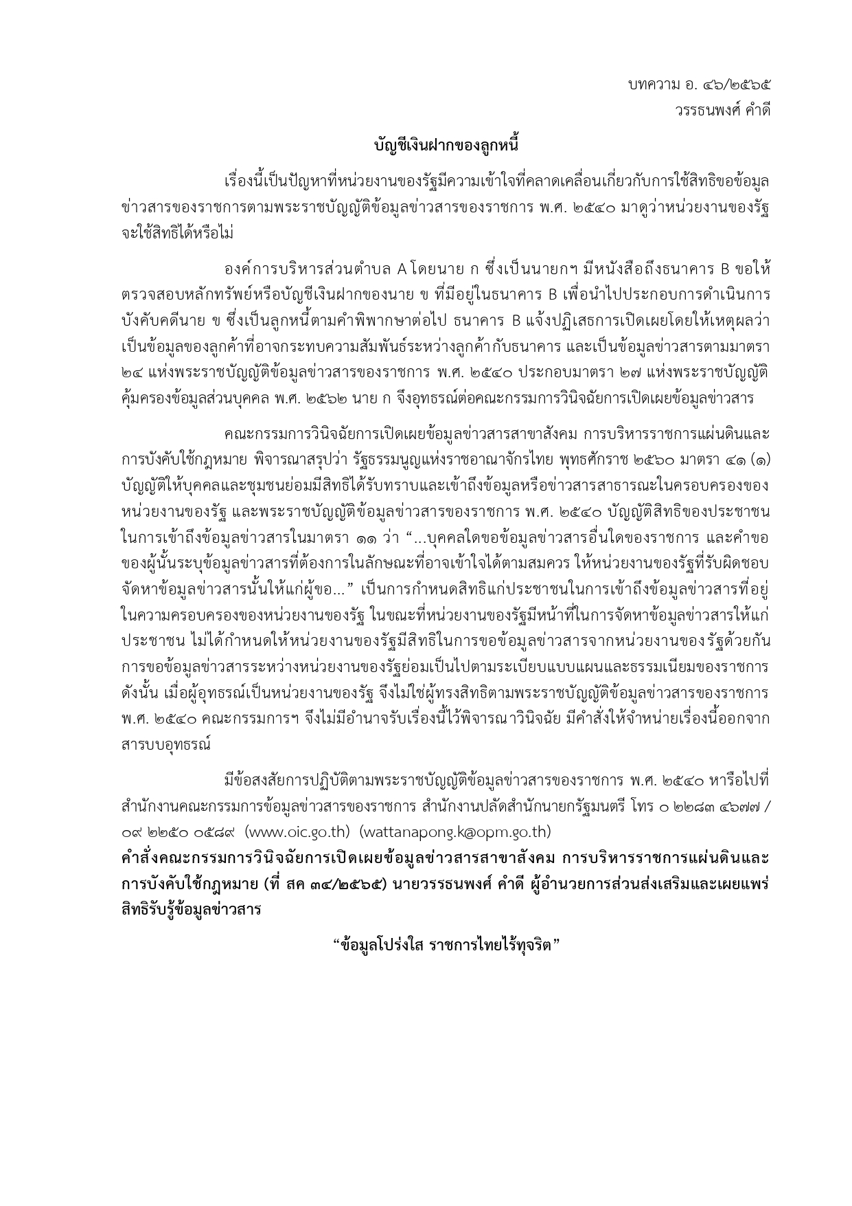 เผยแพร่ความรู้เกี่ยวกับ พรบ.ข้อมูลข่าวสารของราชการ พ.ศ.2540 จำนวน 5 บทความ