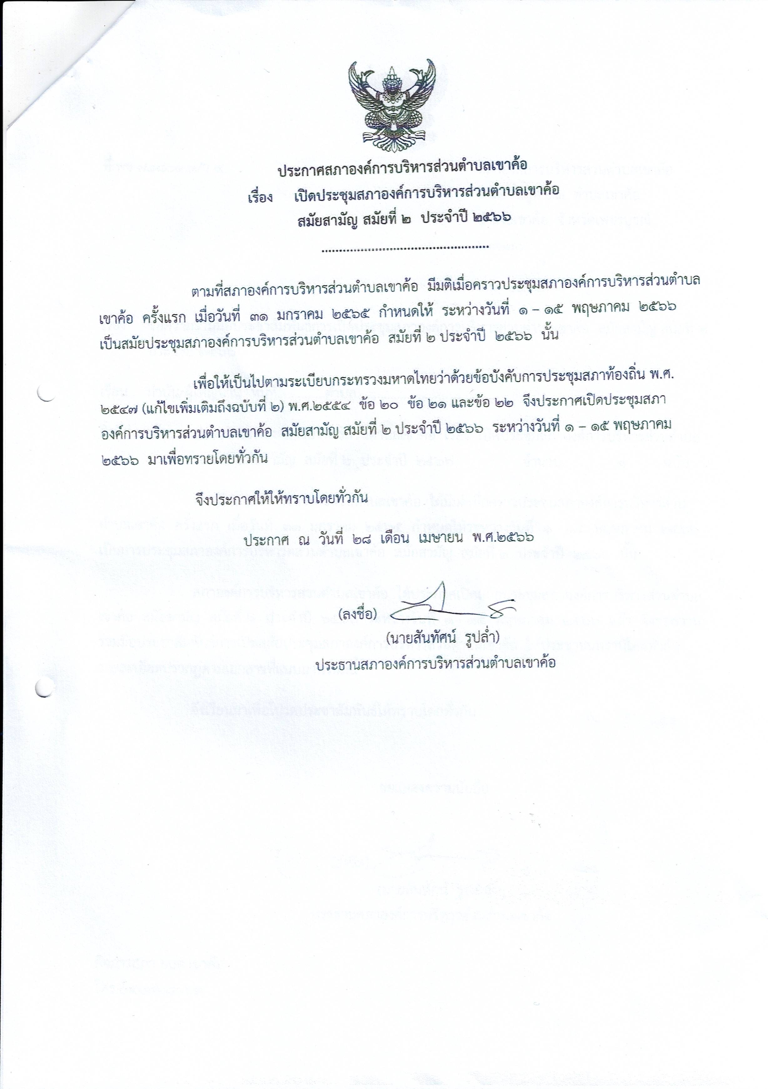 ชื่อเรื่อง : ประกาศเปิดประชุมสมัยสามัญ 2/2566