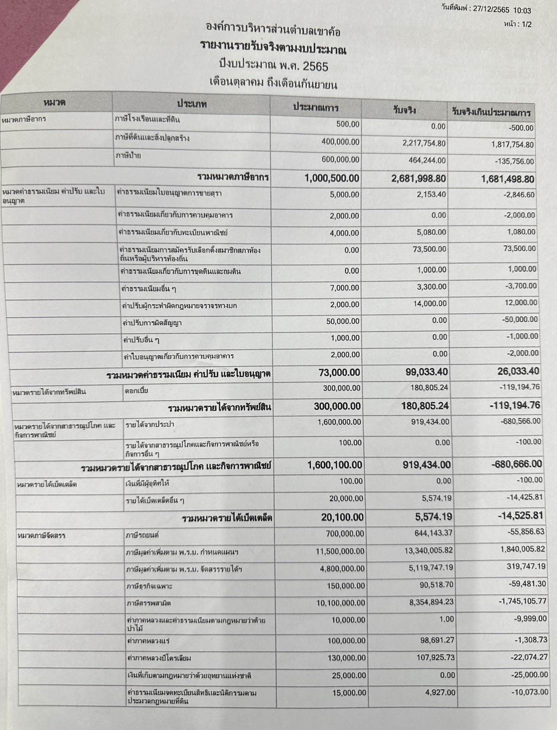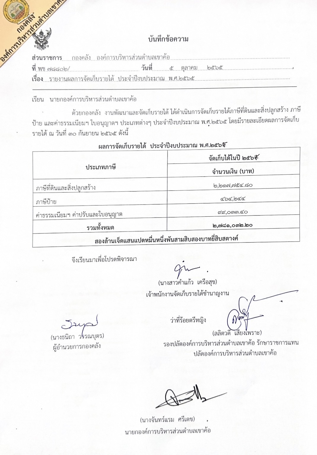 รายงานผลการจัดเก็บรายได้ ประจำปี 2565