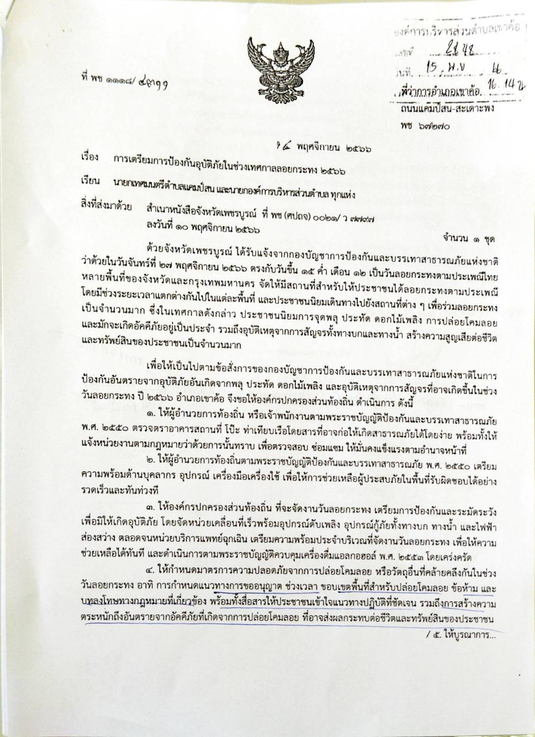รายละเอียด : องค์การบริหารส่วนตำบลเขาค้อ ขอประชาสัมพันธ์การป้องกันภัยพิบัติในช่วงเทศกาลวันลอยกระทง ประจำปี 2566 มาเพื่อทราบโดยทั่วกัน