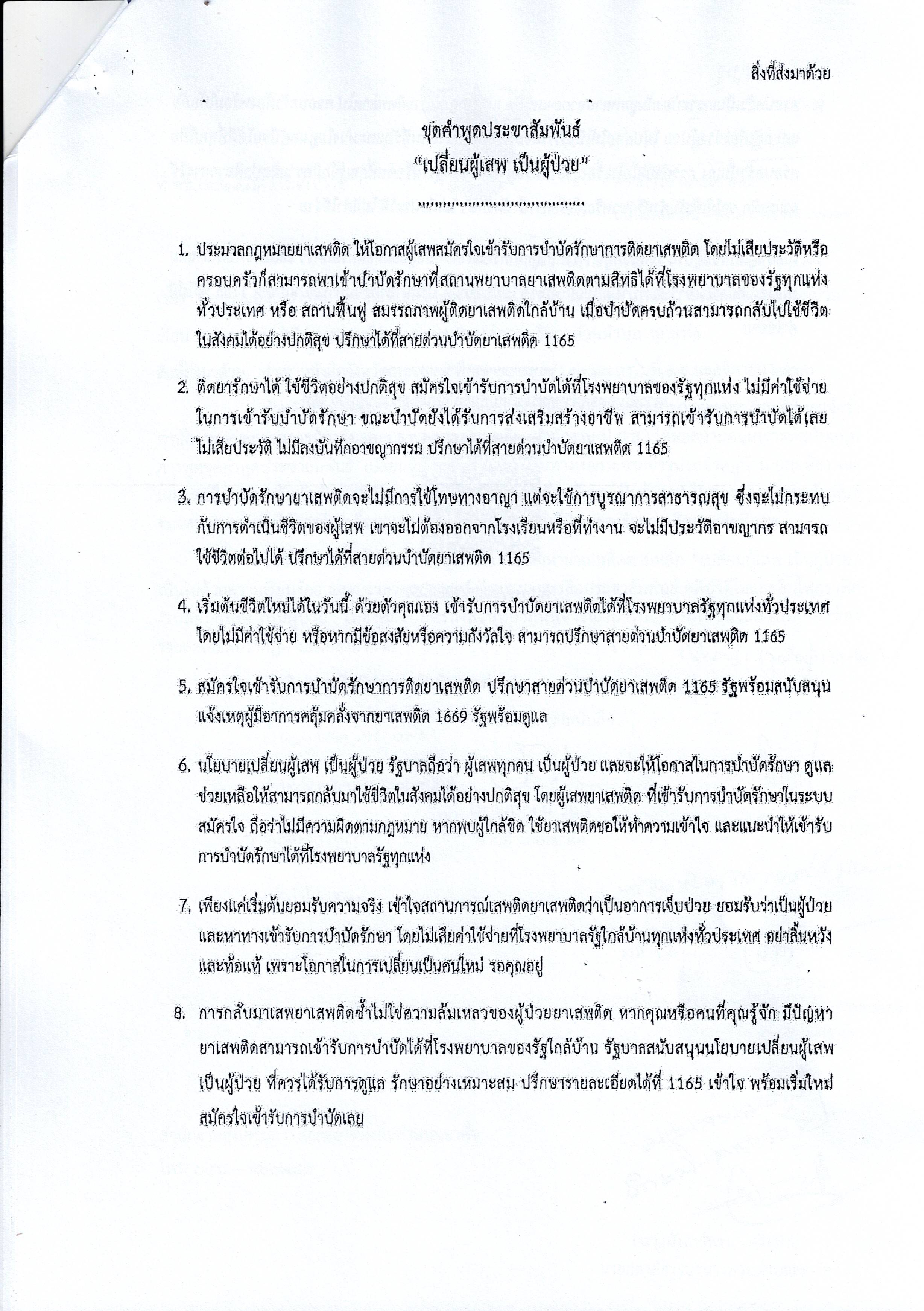 ประชาสัมพันธ์ข้อมูลการแก้ไขปัญหายาเสพติดตามหลัก "เปลี่ยนผู้เสพ เป็นผู้ป่วย"