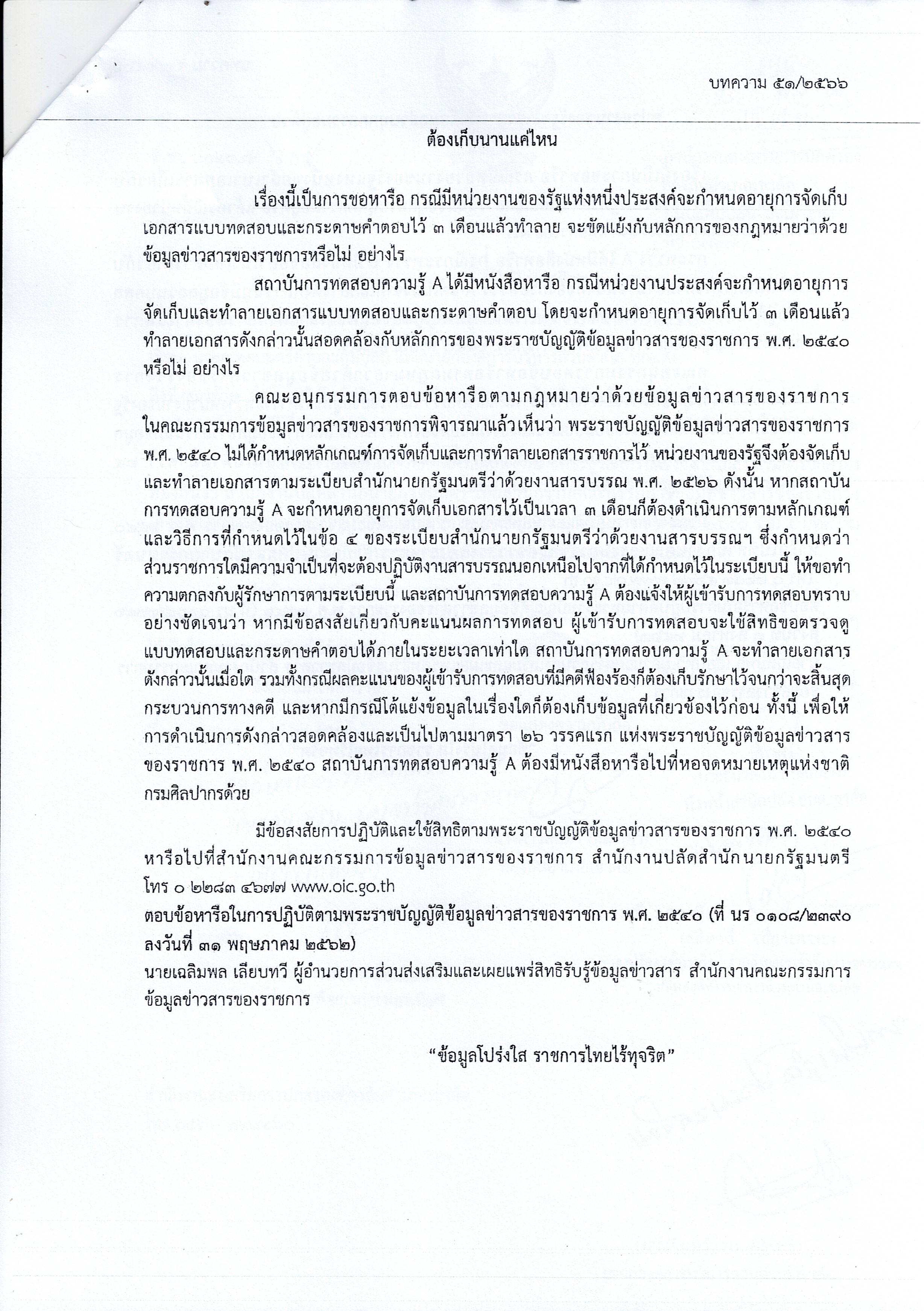 ชื่อเรื่อง : เผยแพร่ความรู้เกี่ยวกับ พรบ.ข้อมูลข่าวสารของราชการ พ.ศ.2540 จำนวน 1 บทความ