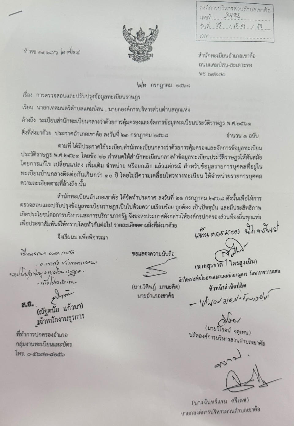 องค์การบริหารส่วนตำบลเขาค้อขอประชาสัมพันธ์ ประกาศสำนักทะเบียนอำเภอ เรื่อง การตรวจสอบและปรับปรุงข้อมูลทะเบียนราษฎร