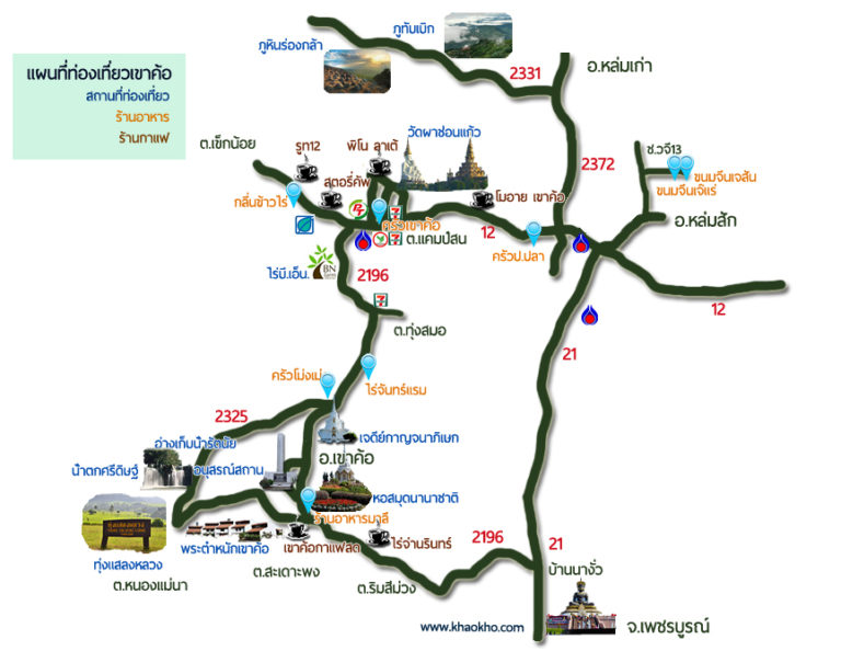 แผนที่แหล่งท่องเที่ยวเขาค้อ และใกล้เคียง